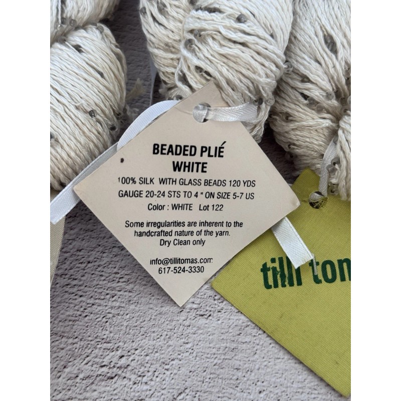 TILLI TOMAS BEADED PLIÉ Yarn ~ 100% Silk W/Glass Beads ~White ~ 120yds/100g