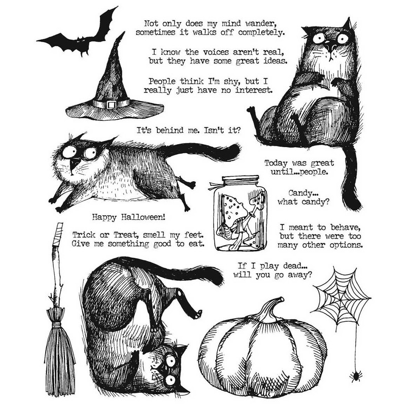- Tim Holtz Cling Stamps 7"X8.5"-Snarky Cat Halloween
