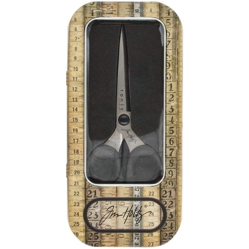 - Tonic Studios - Tools - 6 Inch / 15.2 cm Tim Holtz Haberdashery Snip Scissors with unique patterned storage tin.