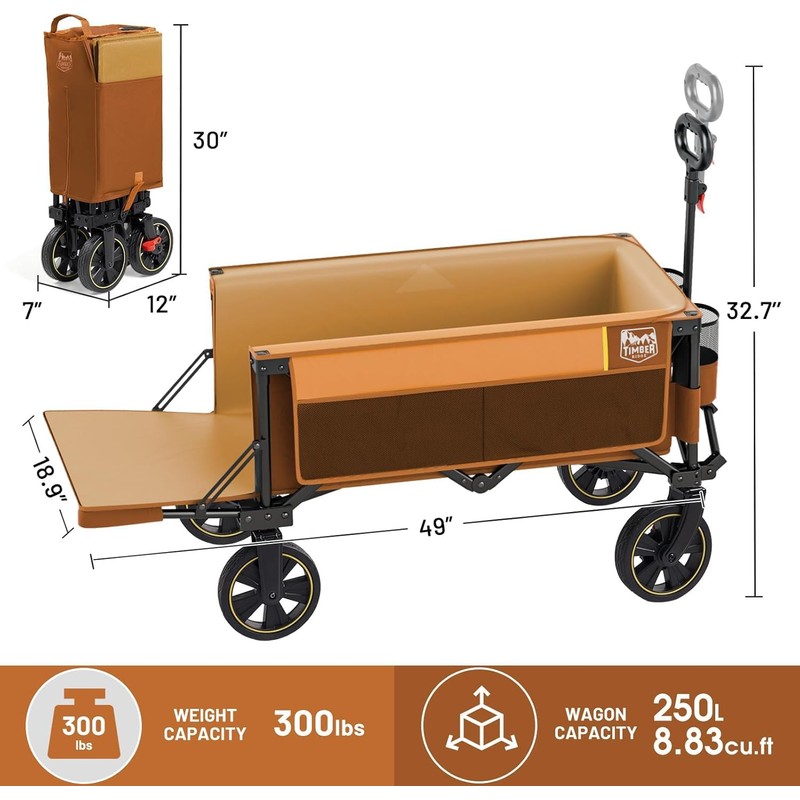TIMBER RIDGE 49" Extra Long Collapsible Folding Wagon with Tailgate and Brakes, 250L Capacity All-Terrain Wagon Carts Foldable, 300lbs Portable Cart for Dog, Garden, Outdoor Camping Sports, Orange