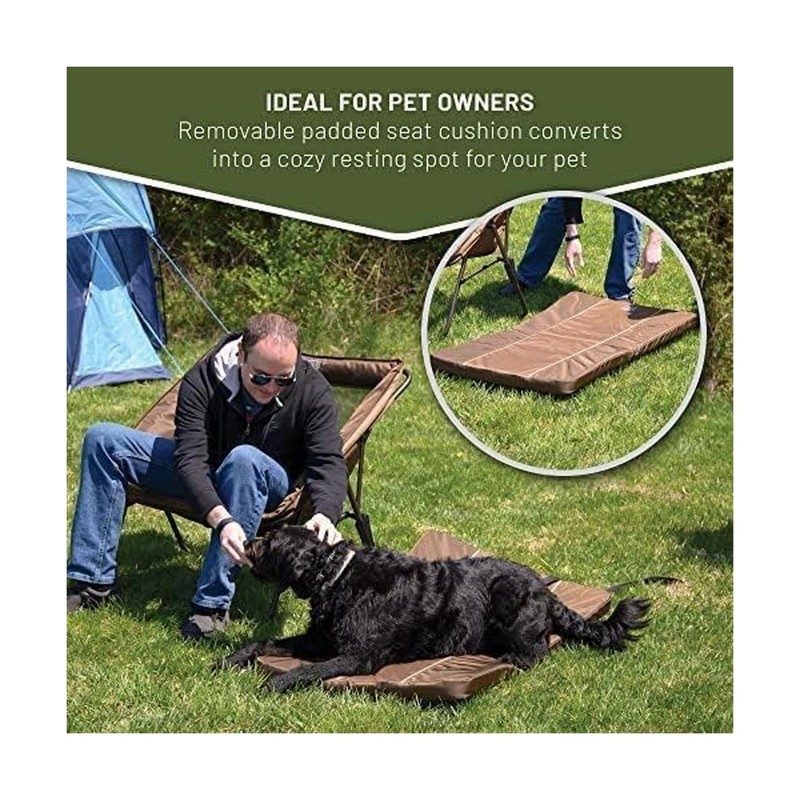 Outdoor Foldable Portable Camping Lawn Chair with Removable Padded Mat for Pets and Mesh Cool Back