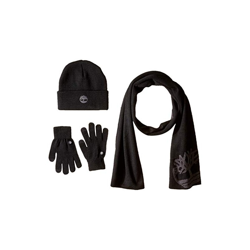 Timberland Double Layer Scarf, Cuffed Beanie & Magic Glove Gift Set Accessory, black, One Size