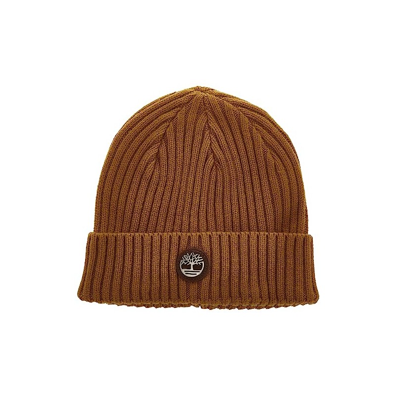 Timberland Men's Ribbed Watch Cap with Logo Plate, Wheat, One Size