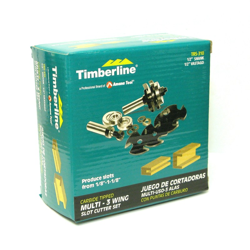 If you're looking for router bits that offer superior cuts and smooth performance at prices that can't be beat then look no further. Timberline and reg; a professional division of Amana Tool and reg; router bits boast high quality at an affordable price. Each Timberline and reg; router bit is carefully engineered and manufactured to maximize performance while stretching your woodworking budget. Each Timberline and reg; router bit utilizes only the finest steel and micro-grain carbide. Our cnc multi-axis sharpening technology creates a shear angle and radial relief on every form type bit. Timberline and reg; router bits feature the latest in anti-kickback design technology. This important feature limits the cutting depth which ensures that our bits are safer for your use. This versatile slotting cutter set produces various size slots.