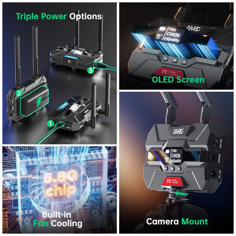 • ✅【OLED screen with product parameter】Unlike ordinary wireless HDMI kits, our professional version of HDMI wireless TX and RX both come with OLED product parameter electronic display, so you can check the connection status and WIFI channel at any time. And when you encounter connection jams, it also supports direct manual channel adjustment for a smoother transmission experience.