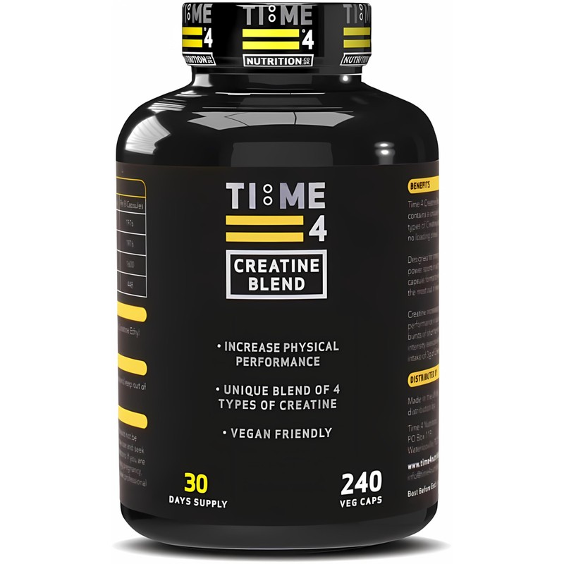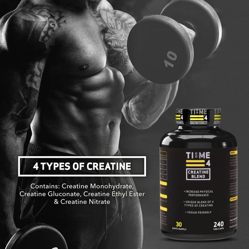 Time 4 Nutrition Time 4 Creatine Blend - 240 Creatine Capsules Not Creatine Tablets, 30 Day Supply, Unique Blend of 4 Types of Creatine, 6000mg Per Daily Serving Improve Muscle Strength Vegan Friendly & Gluten Free