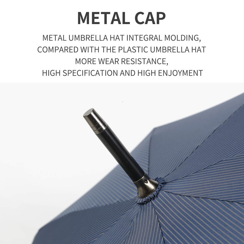TIME LOVER Stick Umbrella Oversize Windproof Umbrella Wooden Hook Handle J Stick Automatic Open Fast Drying Umbrella for Men Women(Navy stripe)