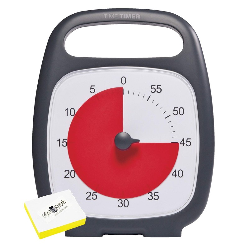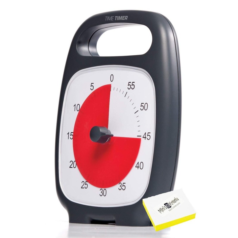 - The TimeTimer Plus Black 60 Minutes + FREE MINIS Sticky Note Pad is a visual time duration clock that can be used without being able to read the clock.