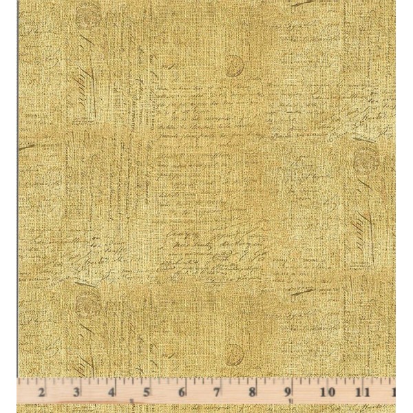 Timeless Treasures Lemon Bouquet Handwriting Text Brown Fabric CD2476 Half Yd Continuous Cut