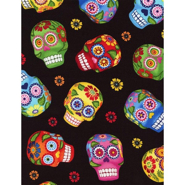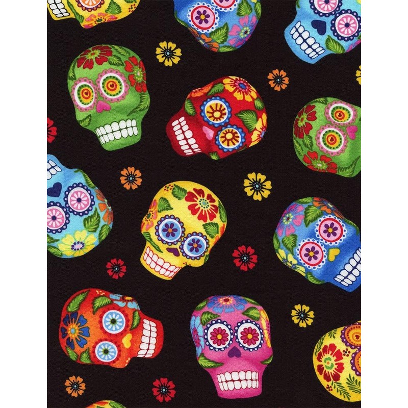 Timeless Treasures Munchies Sugar Skulls GM C1847 Black Fabric