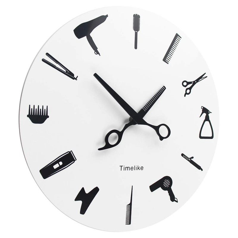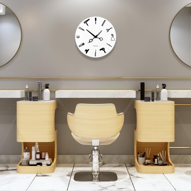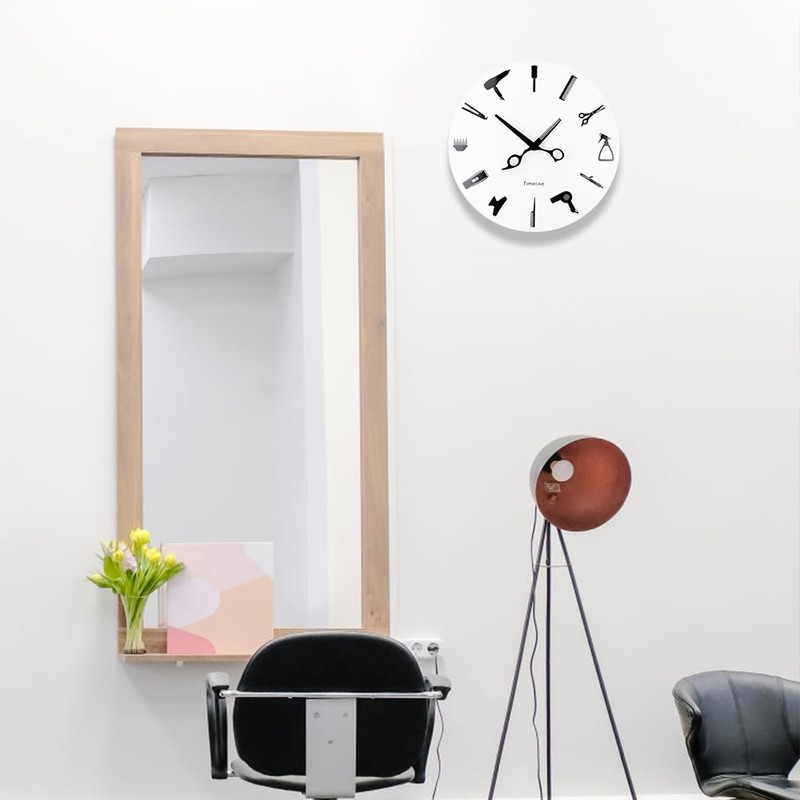 - 🧭 Really Useful Gift - This unique decorative clock will fit to any interior home design - modern, farmhouse or classic and trendy minimalism. It becomes awesome and cool black wall decor of the Beauty Salon Studio, nursery, childrens’ room, living room, kids room, bedroom, kitchen, office, and even for the garage of Hairdressing fans!