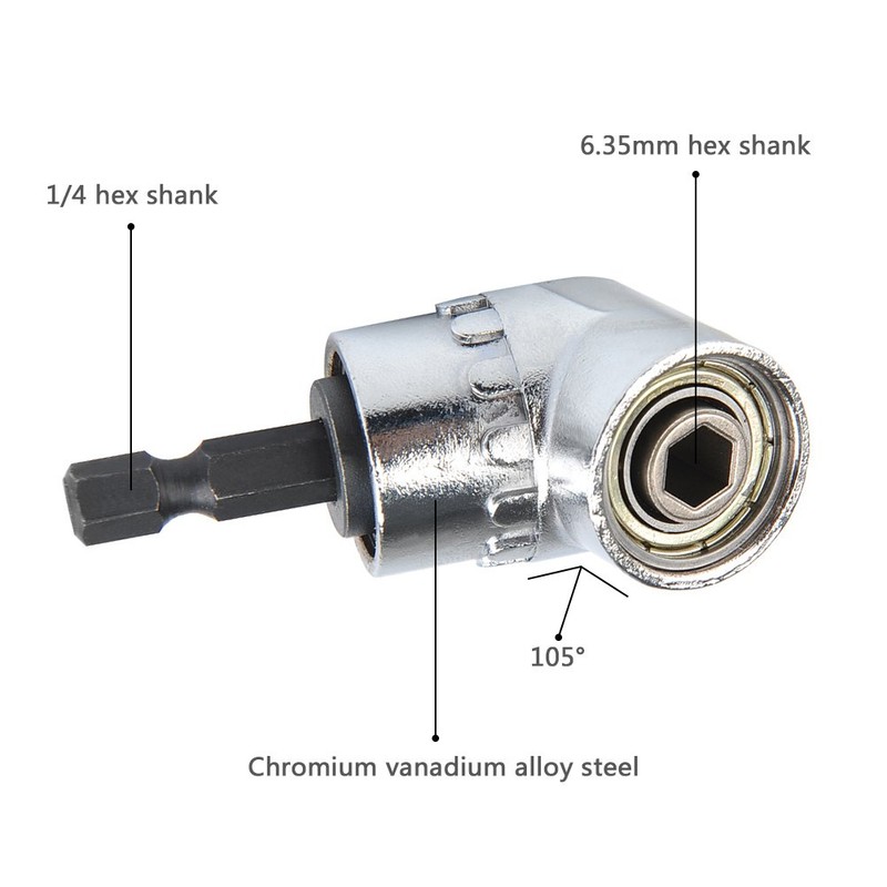 - [Size] Small and lightweight angle adapter 65*32mm, outside shank diameter 1/4", inner head diameter 1/4"