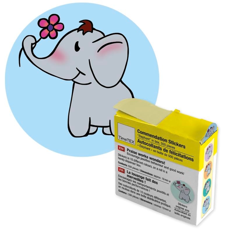 TimeTEX Commendation Stickers "Elephant", Pack of 560, 19 mm Diameter