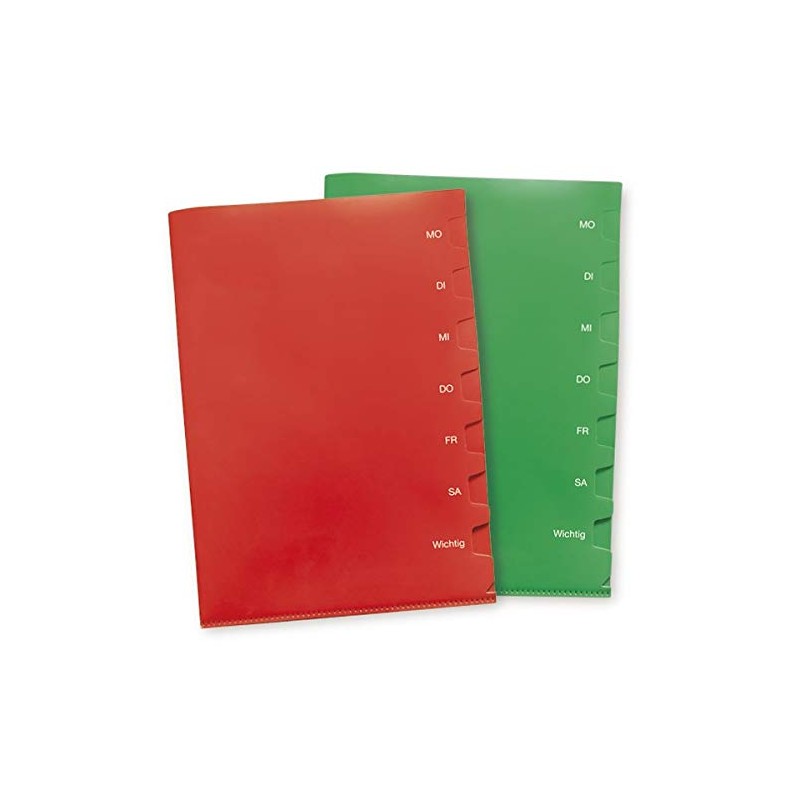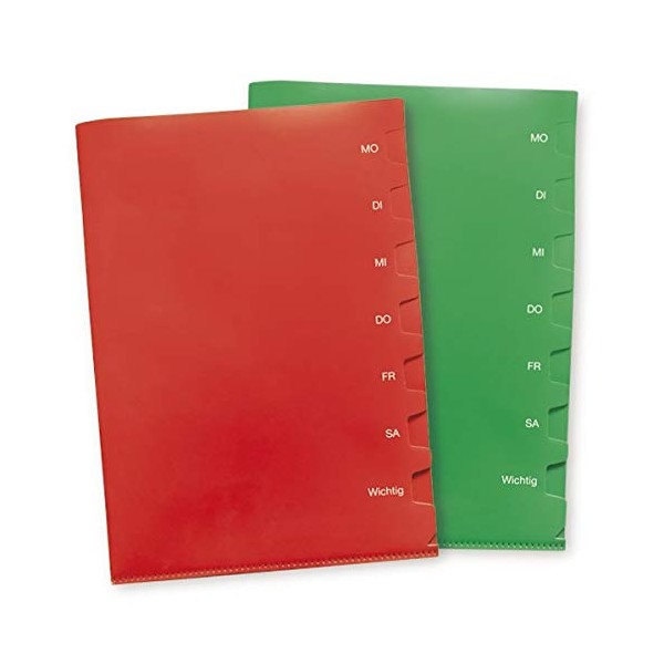 TimeTEX Weekday Folder A4 Plus, 2 Pieces, 7 Dividers, Document Folder Set, Red and Green