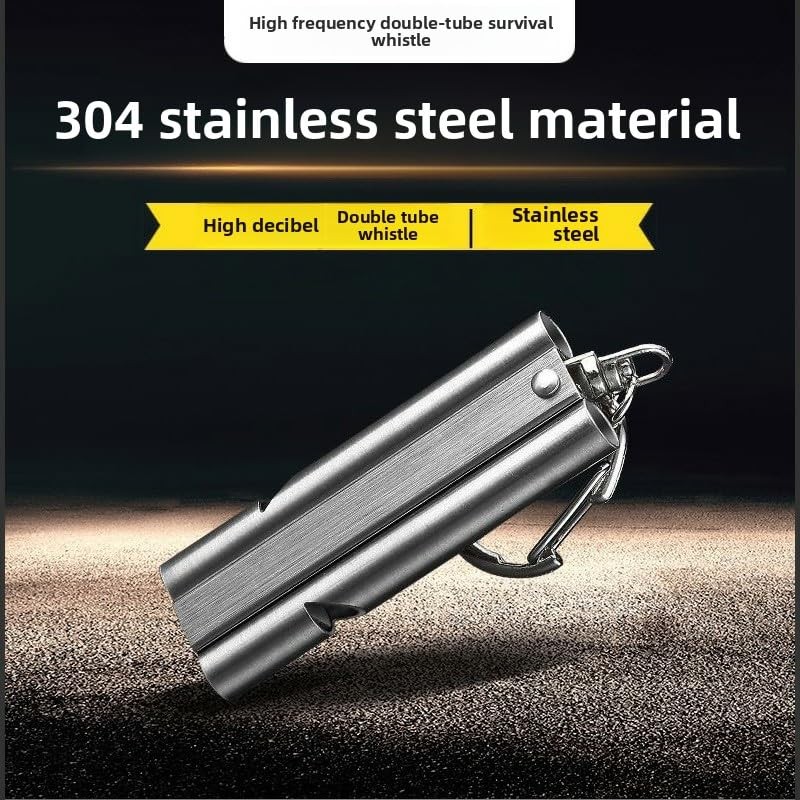 TIMIDAILY Stainless Steel Emergency Whistle 120dB Double Tube with Key Ring Ideal for Mountain Hiking, Camping and Outdoor Activities