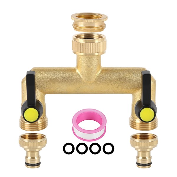 timoplus Wasserhahn Wasserverteiler, Verl?ngerter Griff, 3/4 Zoll Messing Wasseranschluss Verteiler?Verteiler 3/4" Adapter 3/4" f1r Ger?te/Gartenschl?uche (2 Wege Verteiler - Verl?ngerter Griff)