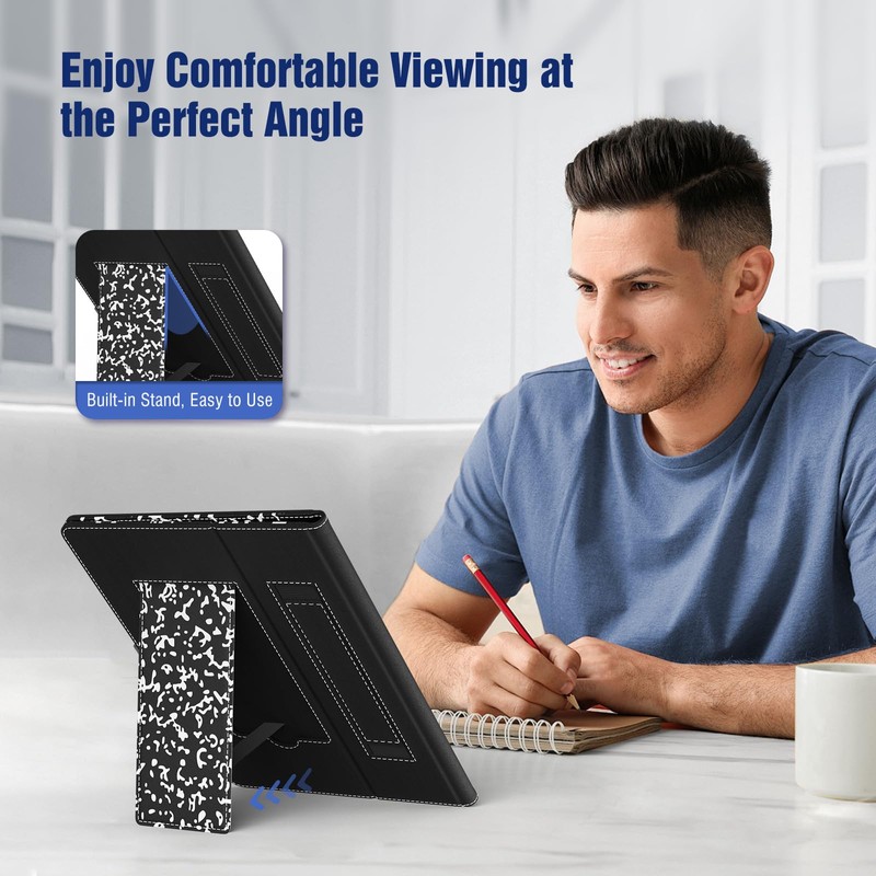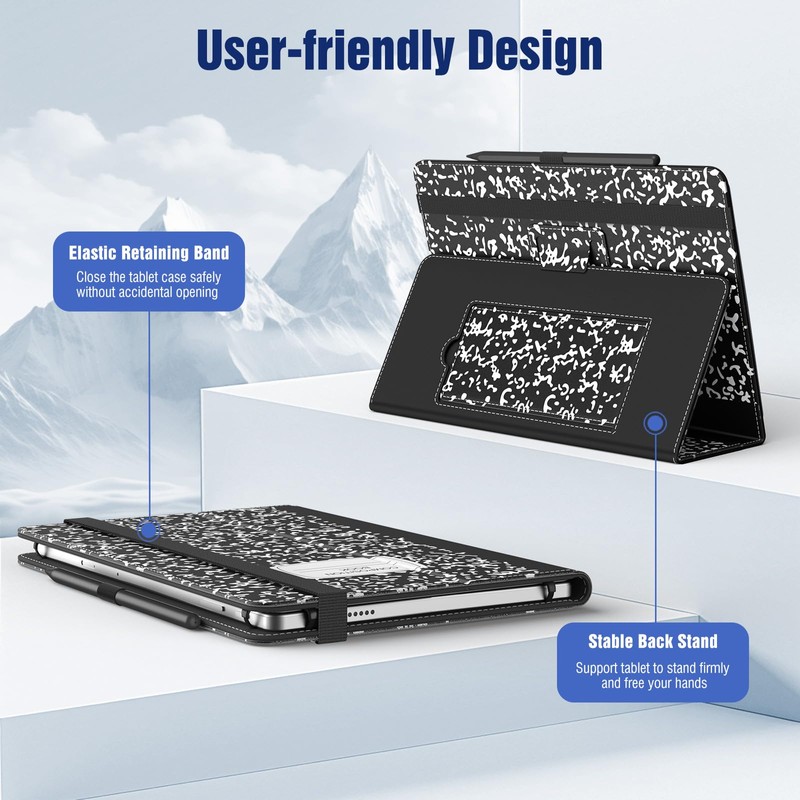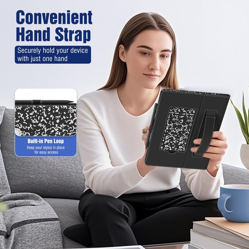 - Easy to Use: The built-in hand strap allows you to control the tablet by one hand firmly. It brings you a comfortable using experience. The external elastic band keeps the tablet cover closed and provides better protection for the tablet