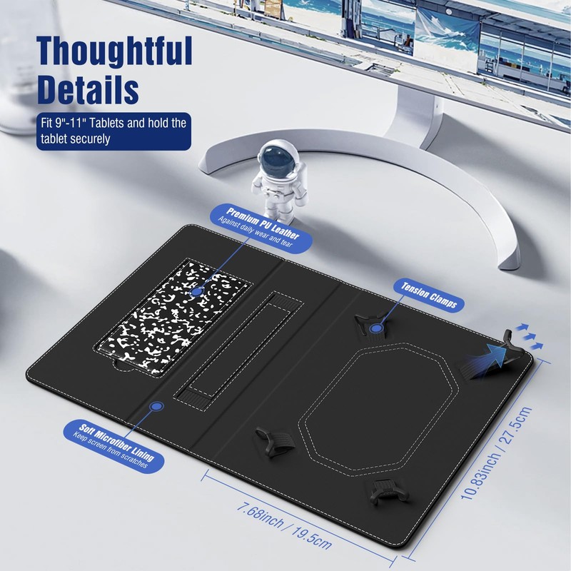 - Silicone Clasps Design: This 10 inch tablet case with four adjustable silicone clasps on all corners can be adjusted to the proper position to securely fasten a 9-11 inch device without scratching the body of the device