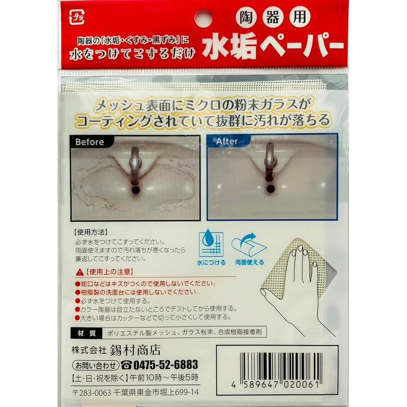 Tin Chimura Shoten Water Scale Paper for Ceramics Scum Remover Cleaning Supplies