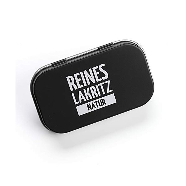 Tin of pure licorice. This can of a licorice contains nothing but pure, aromatic licorice in small, easy-to-portioned pieces. Hard and aromatic, but without sugar or other additives. The natural sweetness of licorice root makes it so delicious. They not only taste good, but also help against throat and stomach discomfort. To make the liquorice look as delicious as it tastes, we naturally do not use artificial colours or preservatives, as with all our products. ?Naturally delicious? It must be, because that's what we stand for. Try our liquorice sticks, or more of our pure licorice. If one can is not enough, you will receive a discount when buying 3 pieces or more, and if your goods value is at least €40, - we will send you your package with the delicious Lasse Lakrits products free of charge. In case of high blood pressure, it is warned of excessive consumption. Ingredients: licorice root nutritional values per 100g: energy 1355kj/320kcal, fat 0g, of which saturated fatty acids 0g, carbohydrates 67g, of which sugar 1.6g, protein 9.4g, salt 0.75g