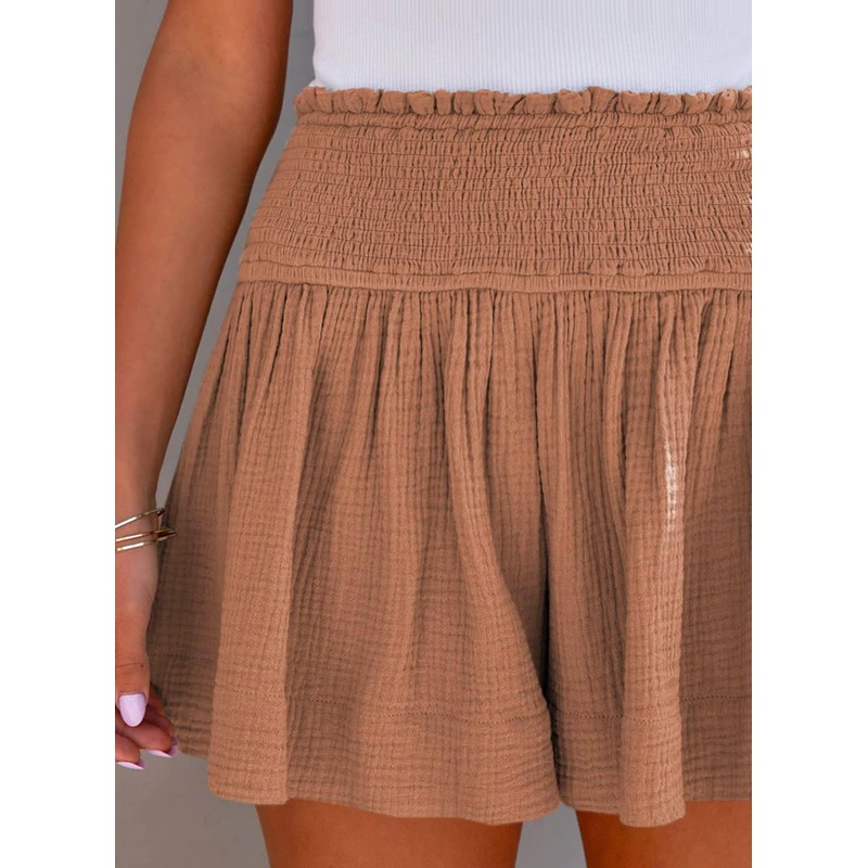 Tincini Shorts Women's Summer Cotton Elastic High Waist Short Trousers Causal Ruffle Beach Shorts Plain Leisure Shorts Sweatpants, pink
