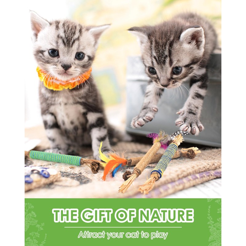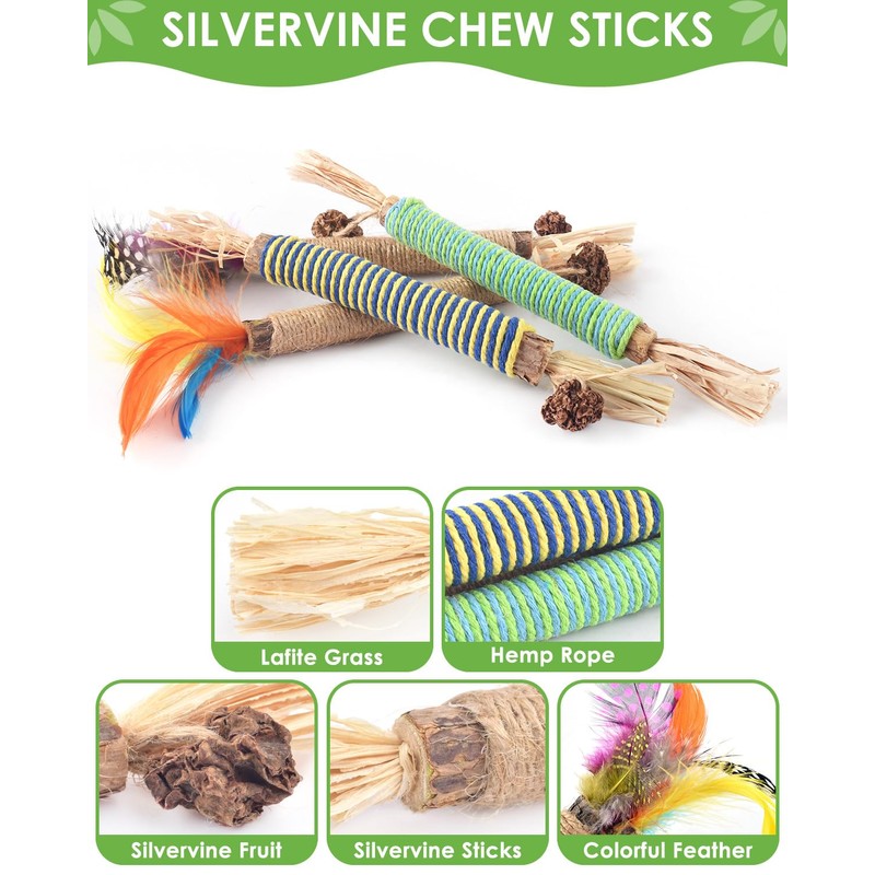 - 【Natural Silvervine Sticks】Our silvervine sticks are made from natural silvervine, raffia, sisal rope and gall fruit (fruit of silvervine), there are absolutely safe for cats to chew and bite.