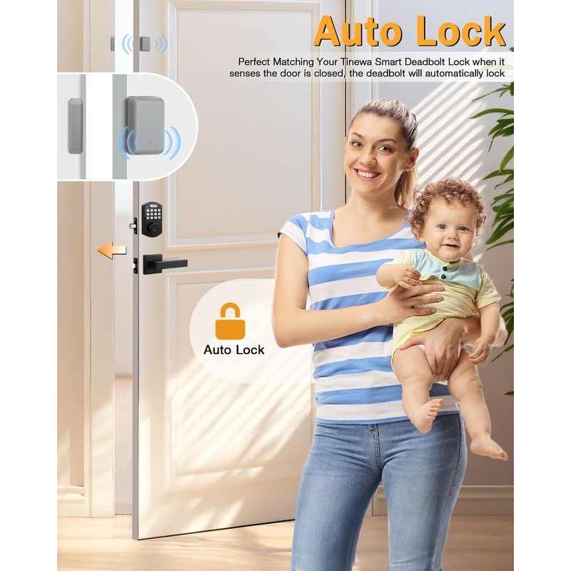 • APP CONTROL:Tinewa intuitive APP can generate, manage and share permanent, timed, one-time, recurring passwords with visitor, track door activity with real-time access logs. Keypad deadbolt lock also can be remotely unlocked by smartphone via Bluetooth/Gateway (IFTTT) integration.
