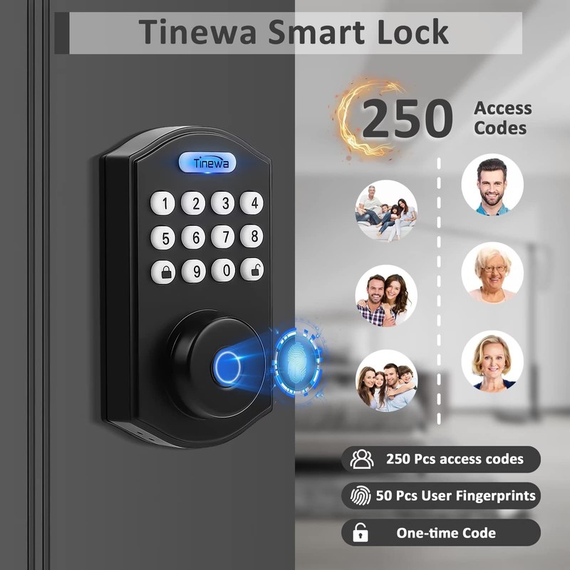 • [Tinewa APP Remote Control] Tinewa smart locks allow you to grant temporary access to your home for guests, cleaners, or delivery people, without having to physically hand over a key. [Auto Lock Function] This entry door lock can set to be locked automatically in 5-60s after the door closed, avoiding situations where you forget to lock the door due to a rush. More convenient for the elderly and children.
