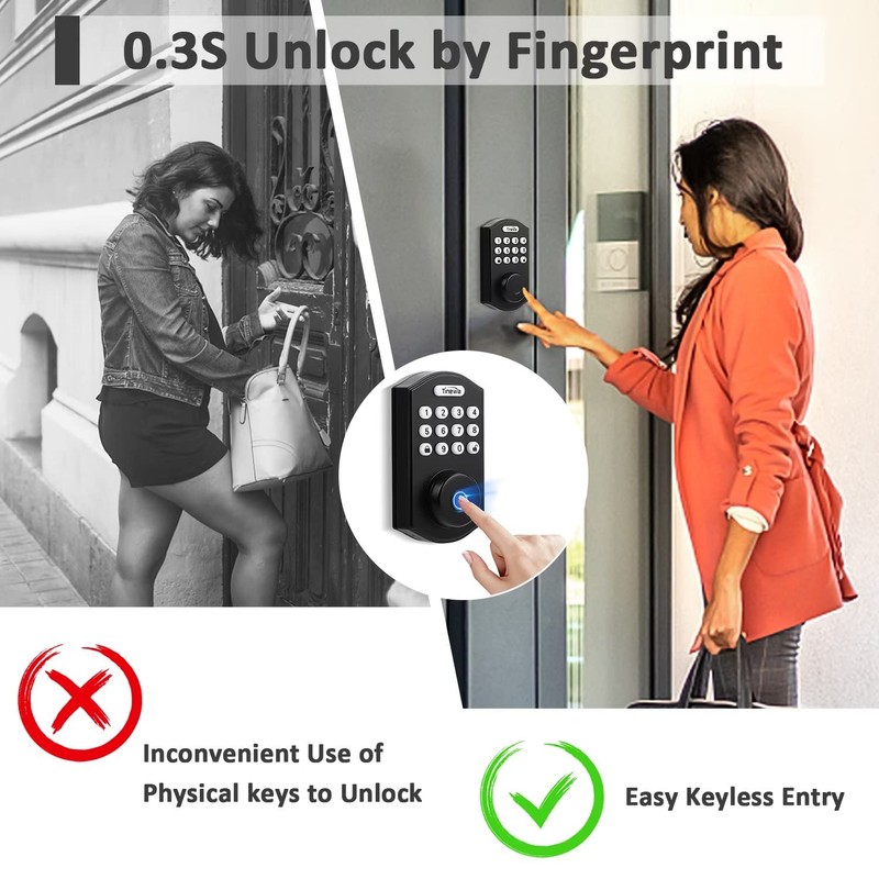 • [Convenience] 4-in-1 Smart Door Lock: Passcode + Fingerprint + APP Control + Key. This can be especially convenient if you forget your keys or need to let someone into your home while you're away.
