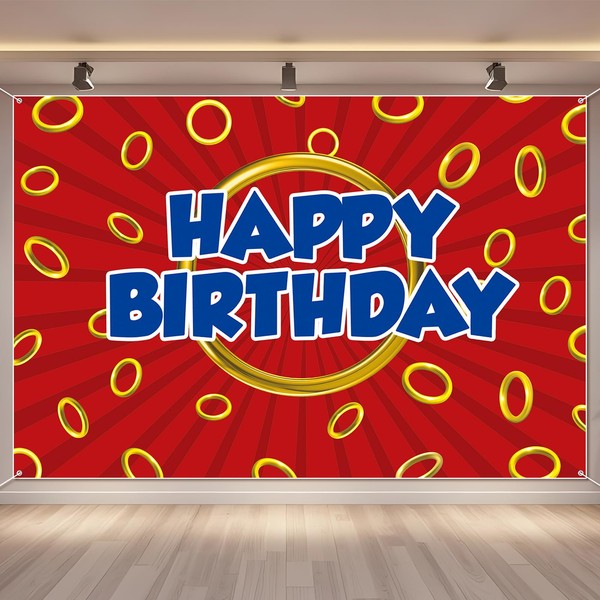 Tingjoo Cartoon Birthday Backdrop Photography Blue with Gold Ring Print Themed Party Banner Video Games Party Backdrop Photo Background Supplies (Red,5x3ft)