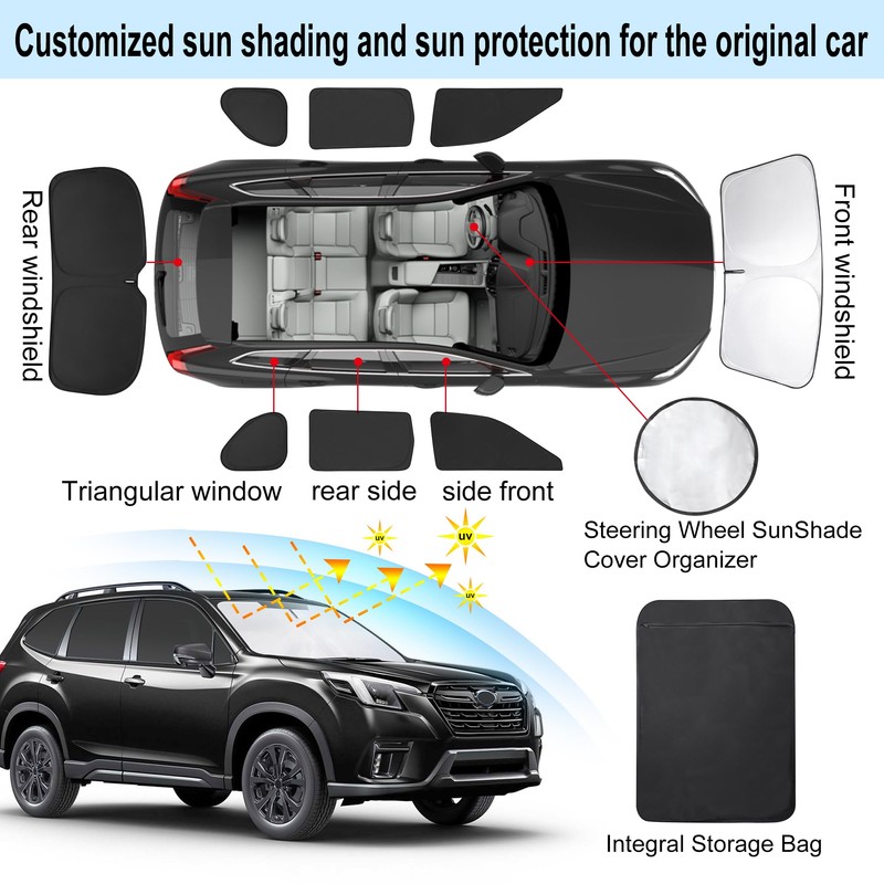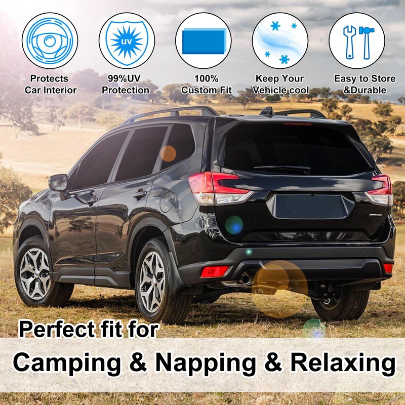 - Customized Design:The sun shade custom fit for Subaru Forester 2019 2020 2021 2022 2023 2024.Our window shade is according to the car size design,perfectly fit your car and does not need to trim.windshield sun shade solve the problem of light leakage and incompatibility of the old umbrellas.The sunshade designed for Subaru Forester.