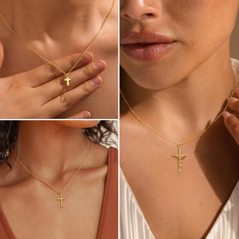- Perfect Craftsmanship:These cross necklaces are crafted from high-quality materials with a 14K gold plated finish that is resistant to tarnishing and rust. Nickel-free, lead-free, and hypoallergenic, they are gentle on sensitive skin.