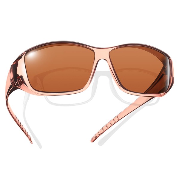 TINHAO Polarized Fit Over Sunglasses Wrap Around Over Glasses for Men Women Driving UV Protection(Brown, Brown)