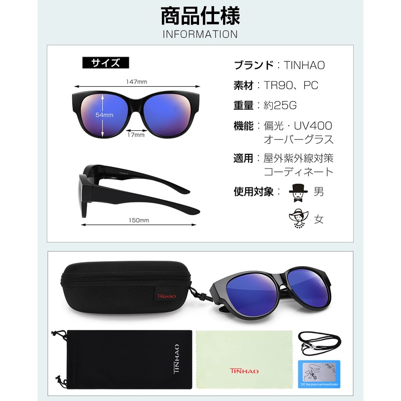 TINHAO Women's Sunglasses, Polarized Over Glasses, Over Sunglasses, 99.9% UV Protection, Over Glasses, Driving, Travel, Going Out, Fashion Sunglasses, blue