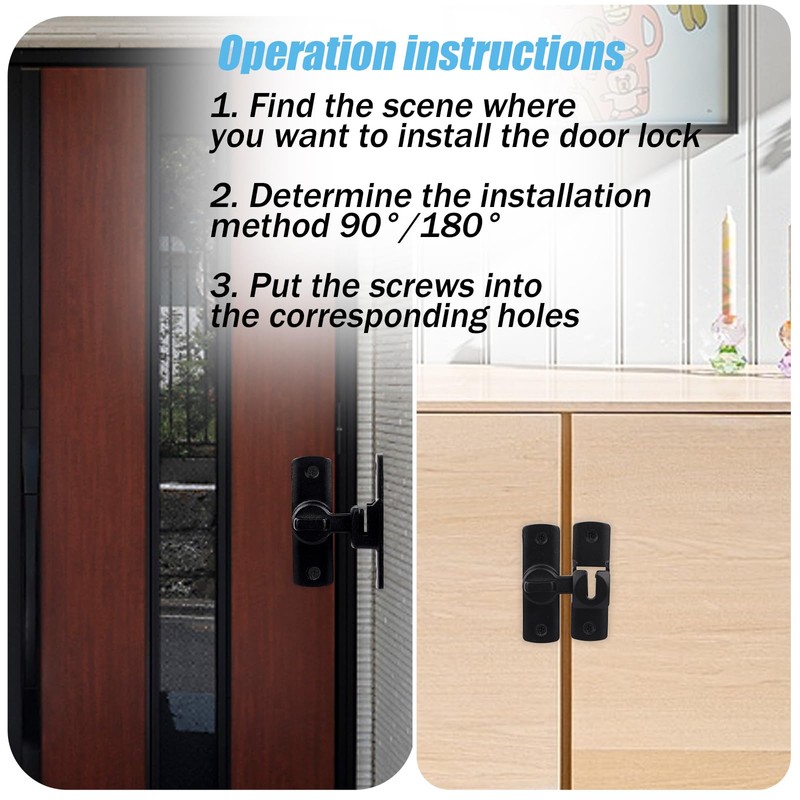 - Easy to Install: Simply find the desired location for your barn door lock, determine the suitable installation angle (90° or 180°), and screw it into the designated holes. No complicated steps required.