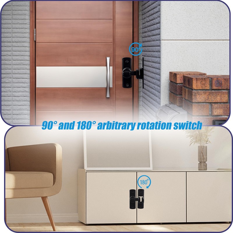 - Multi-Angle Installation: The barn door lock offers versatile 90-degree and 180-degree mounting options, allowing you to install it in various positions to suit different door types and spaces. Ideal for sliding doors, right-angle gates, and interior doors.