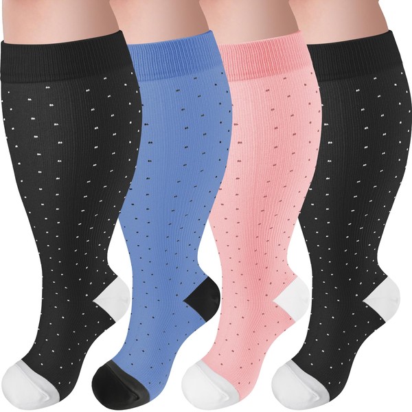 Tinojye 4 Pairs Plus Size Compression Socks,Extra Wide Calf 20-30 mmHg Knee High Compression Socks for Men Women Circulation