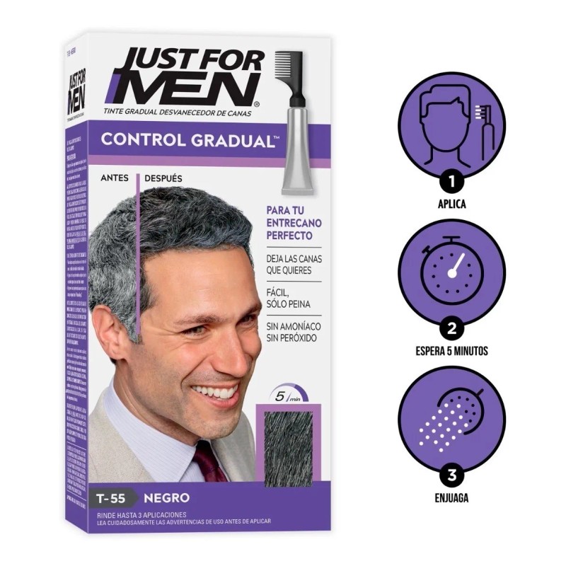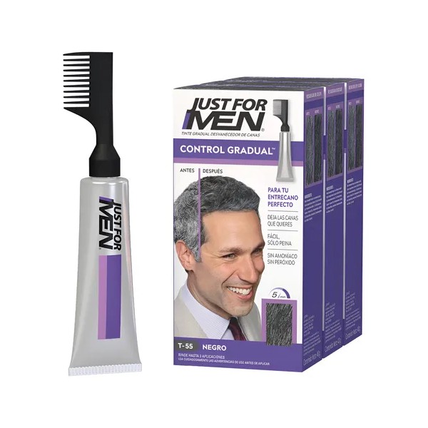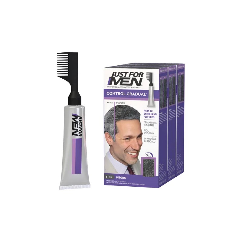 Tinte Just For Men Control Gradual Negro 3 Pack T-55 Moreno-negro