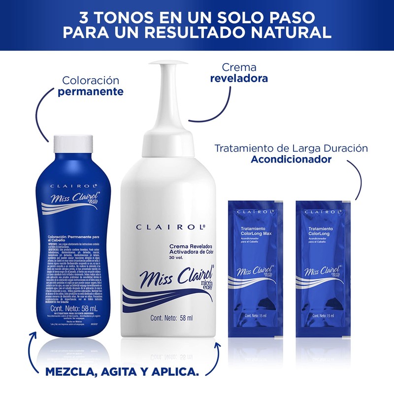 - 3 tonos en 1 solo paso, para un color de aspecto natural