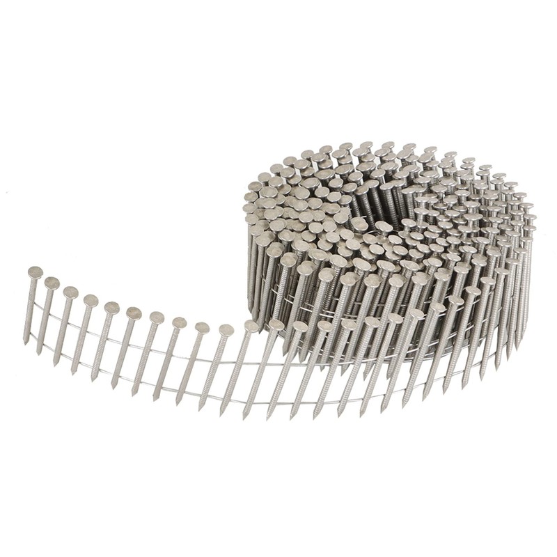 - Coil siding nail for use in cement board siding or fencing applications.