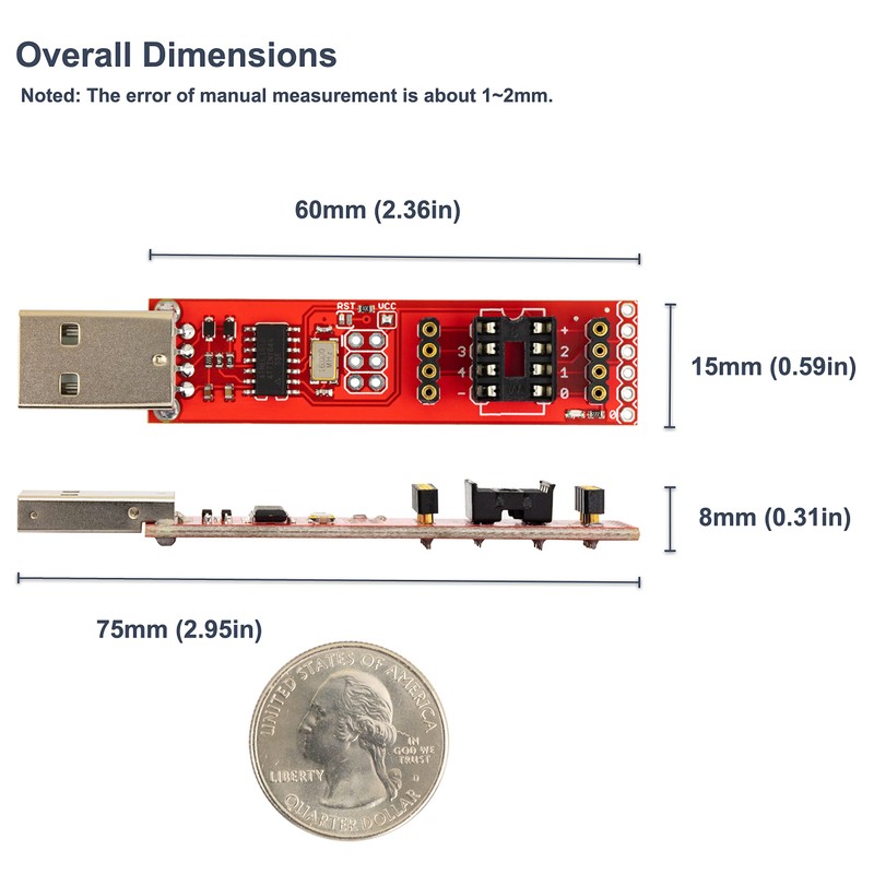 - Easy to use for programming ATTiny ICs (ATTiny85, ATTiny45, ATTiny13A, etc.)