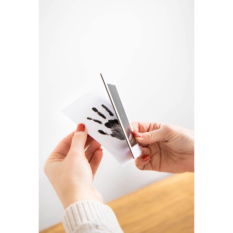 - Holds one 4x6 photograph and 2 openings for handprint & footprint; Non-toxic; 100% baby safe; Not intended as a toy