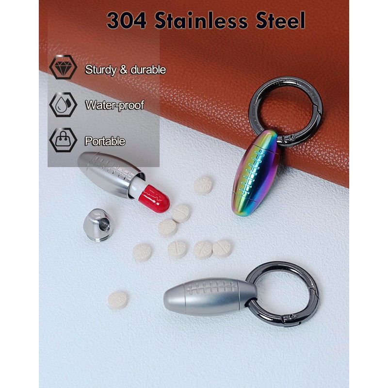 Tiny Keychain Pill Holder, Mini Pill Case Pendant, Small Metal Pill Box Micro Pill Container for Travel Purse Pocket (Multicolour, Mini)