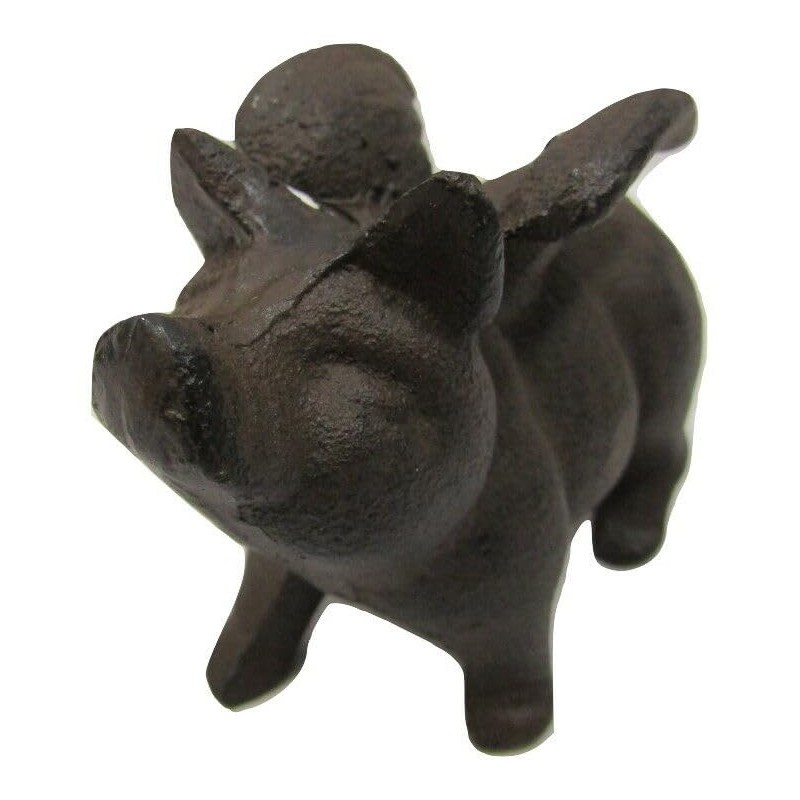 Tiny Miniature Cast Iron Flying Angel Pig Hog Figurine 3.75 Inch Rustic Primitive Style