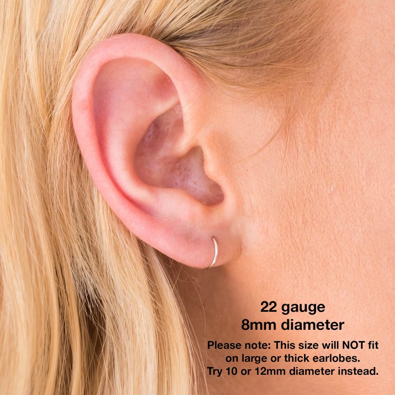 Tiny Silver Hoop Earrings Solid 925 Sterling Silver Mini Hoops 8mm Size 22 Gauge Sensitive Ears