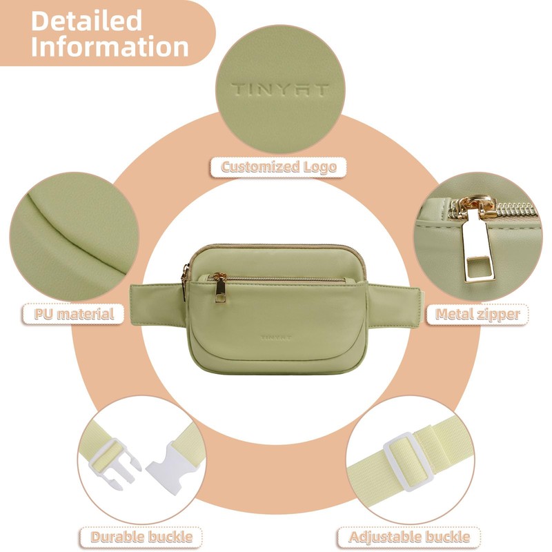 TINYAT Fanny Pack for Women Belt Bag 3-Zipper Pocket Crossbody Waist Bag with Adjustable Strap PU Sling Purse Fashion Bum Bag