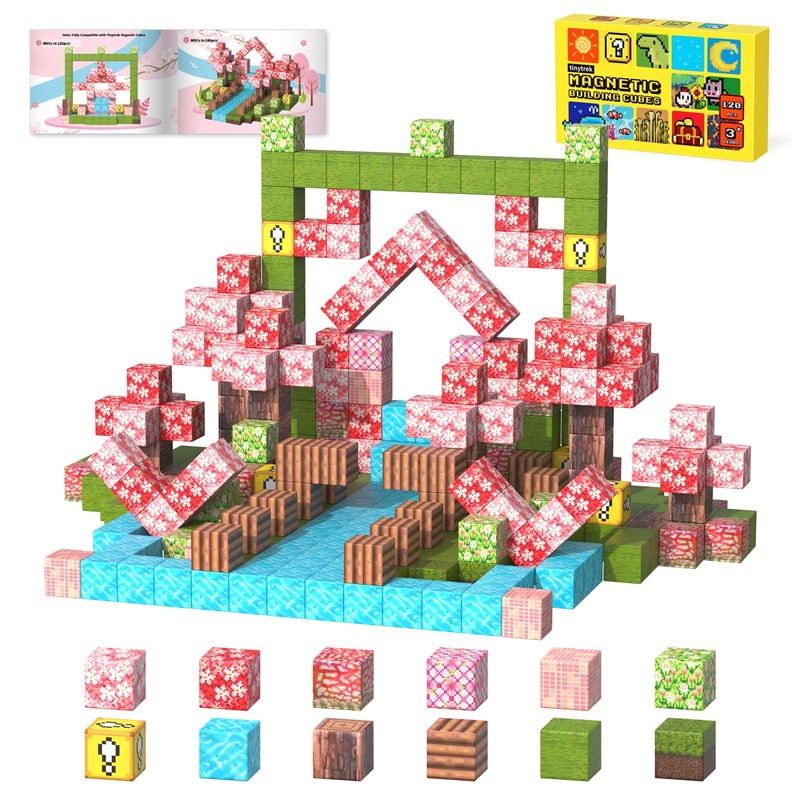 - MAGNETIC BLOCKS ADVENTURE : tinytrek Magnetic Building Blocks -120 Piece Sakura Set offers a variety of 12 natural element patterns, including cherry blossoms, grass, land, wood, and rivers. This magnetic toys opens up a world of imagination and creativity for children as they build and explore their cherry blossom forest adventure! Let your child embark on an exciting journey of discovery in a cherry blossom forest filled with fun and surprises