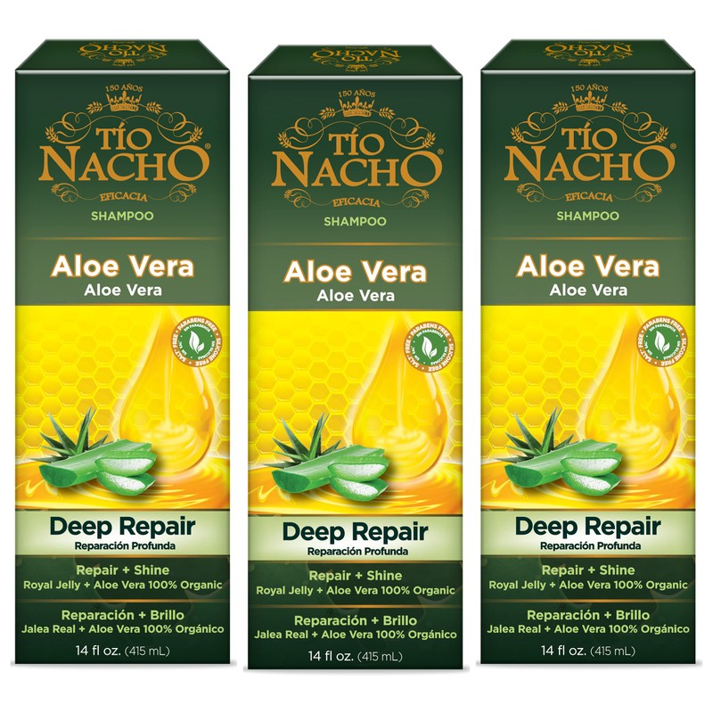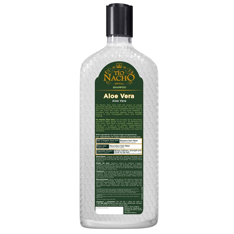 Tío Nacho is a leading Hispanic hair care brand. Its formulas with ingredients of natural origin and royal jelly enhance the beauty of all hair types. Tío Nacho Deep Repair system with Aloe Vera 100% organic plus royal Jelly eliminates damage* repairing the hair from the roots to the ends keeping it protected against future damage. Its formula with the power of nature leaves your hair soft, manageable, shiny and healthy looking. Their formula contains also Vegetable Keratin, an ingredient of natural origin recognized for bringing softness, strength and shine to the hair. Paraben free salt free. For better results, use it with Tío Nacho Aloe Vera Deep Repair Shampoo Mask Hair Treatment