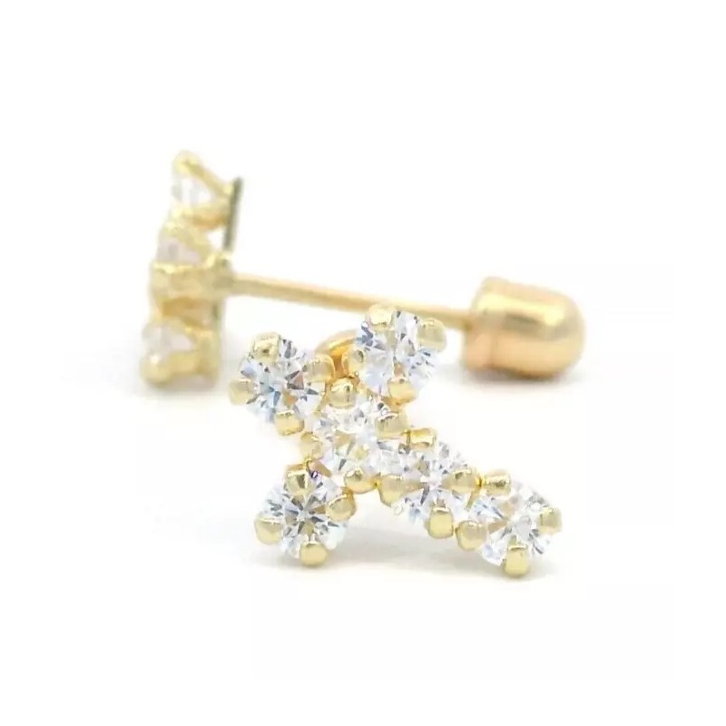 Introducing these elegant 6x9mm Squared Cross Earrings, crafted from 14k yellow gold. Featuring sparkling cubic zirconia stones, these earrings offer a refined touch of dainty fashion. The screw-back design ensures a secure fit, making them a perfect choice for everyday wear. Designed with women in mind, these earrings add a subtle yet sophisticated sparkle to any outfit.