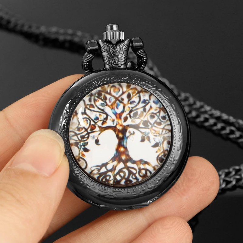 - 【Tree of Life Pocket Watch】: Engraved with Tree of Life Glass themed picture on the front, classic and unique design, very suitable for use as a fashion accessory